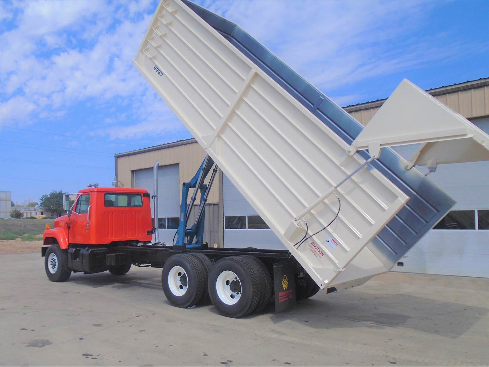 New 16" Colt dump box, high lift gate, vibrator, ISX Cummins, 475 HP, air ride, jake, 24.5 tires, aluminum wheels, 3.70 ratio, 220 WB, P.S., A/C, 18 speed, lockers, 46,000 lb. rear ends,...