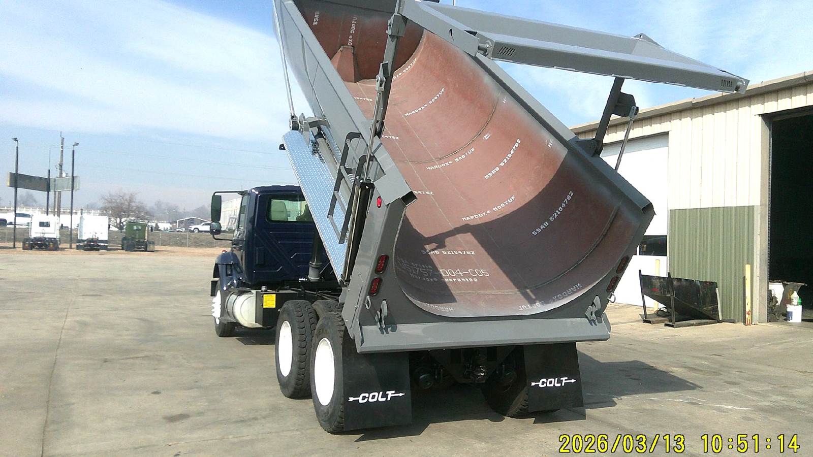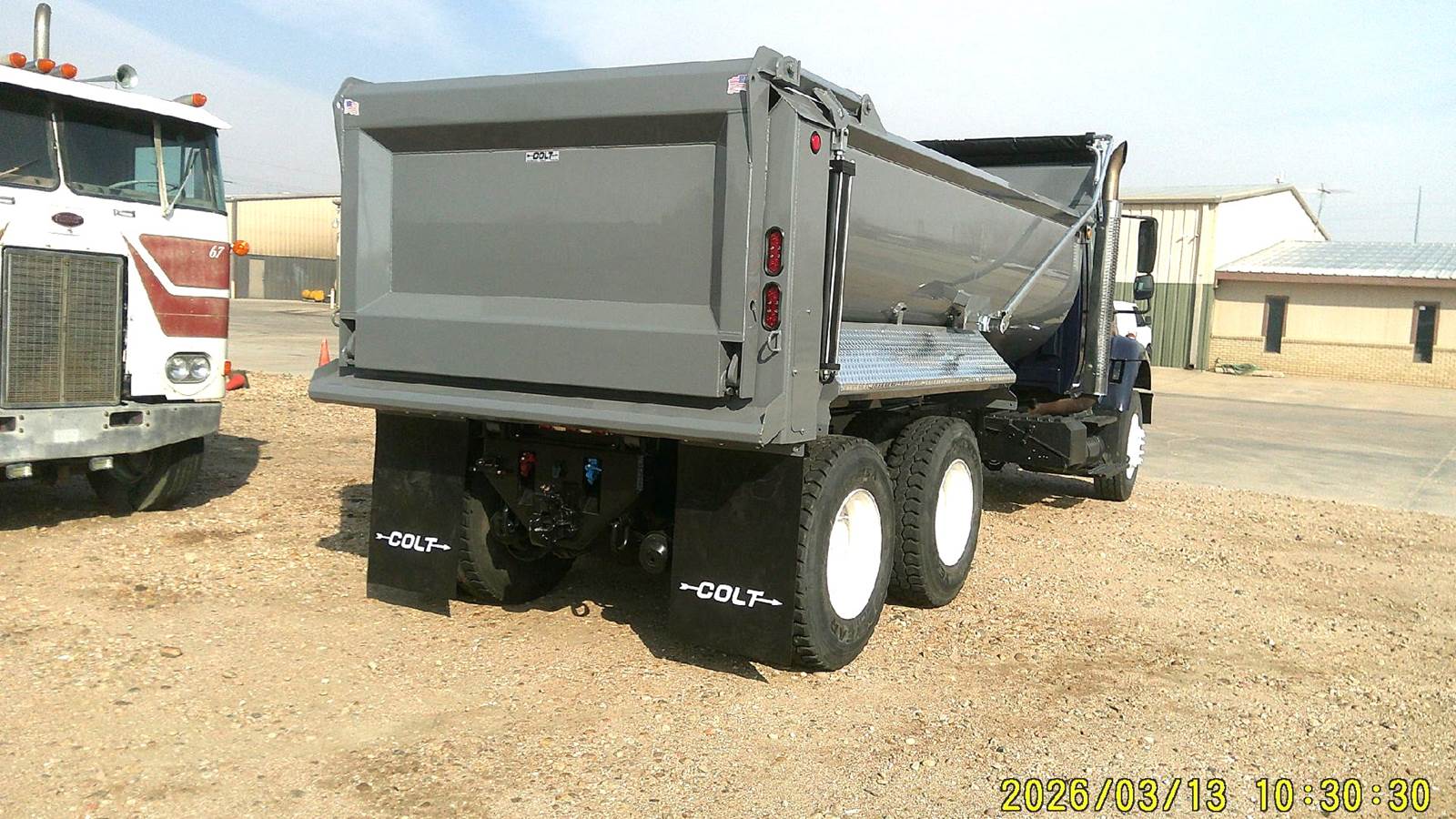 DT-530, 300 HP, Allison auto 3560, P.S., A/C, new 17' Colt Rock Box, high lift gate, electric tarp, pintle hitch, vibrator, 250 WB, 22.5 tires, steel wheels, 5.37 ratio, spring suspension, 14,000 lb. front axle, 40,000 lb. rear axle, 167,010 miles, good truck.